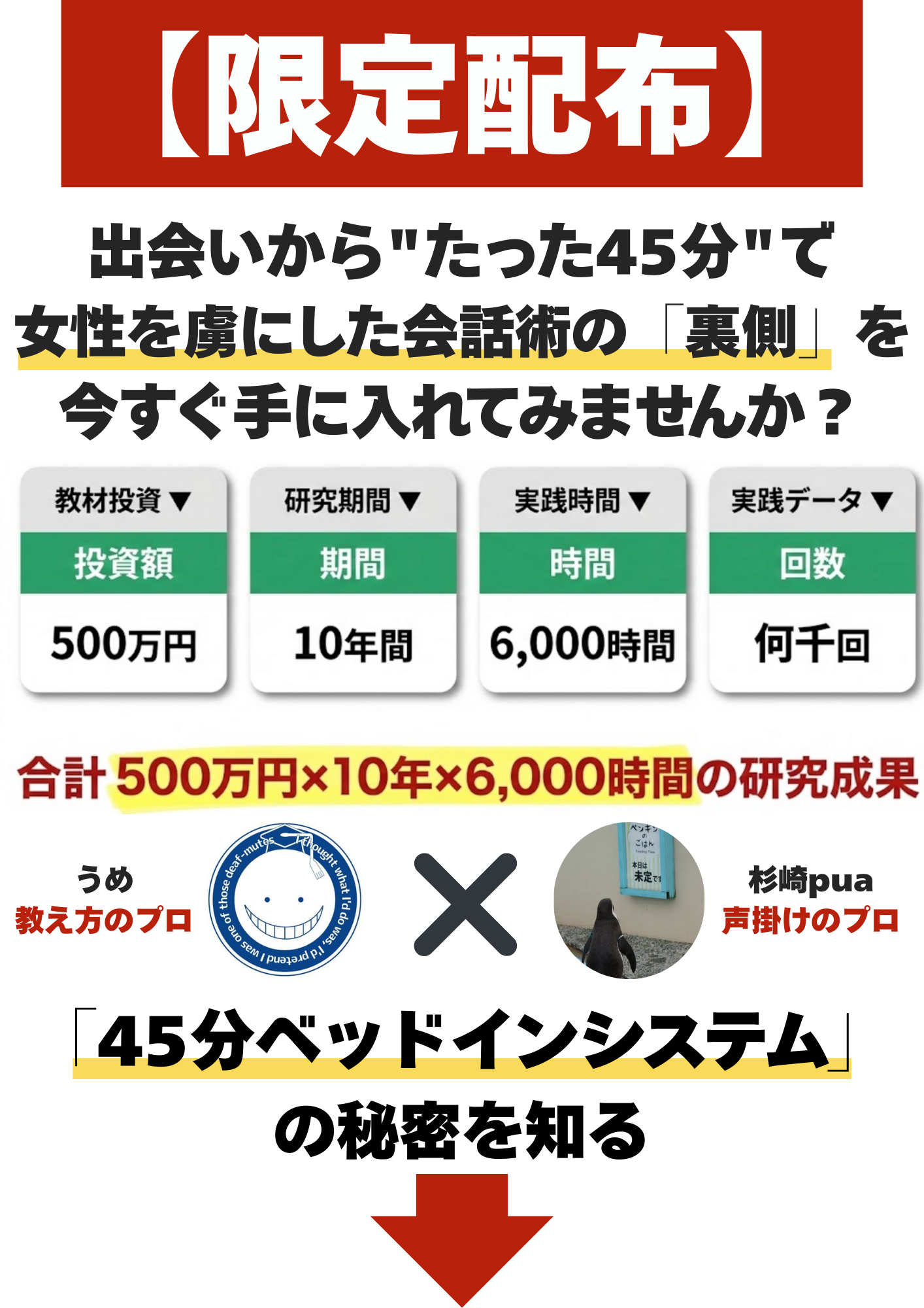 ☑ なぜ、杉崎は「出会ってから平均45分でベッドイン」できるのか?天才がやっている「会話の流れ」を、メルマガで公開します。今すぐ登録して、その秘密を知ってください。